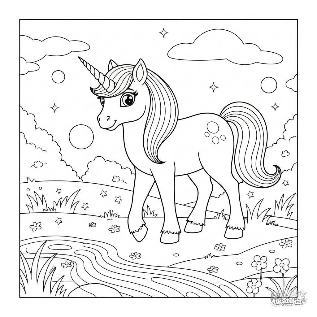 Uma página para colorir de Pôneis com nível Médio. Ela combina com a idade 3-6 anos, imprime bem em casa e abre imediatamente no modo online.