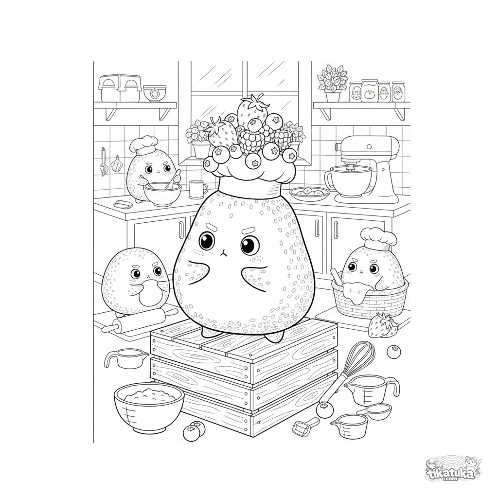 Uma página para colorir de Comida kawaii e boba com nível Difícil. Ela combina com a idade 10+ anos, imprime bem em casa e abre imediatamente no modo online.