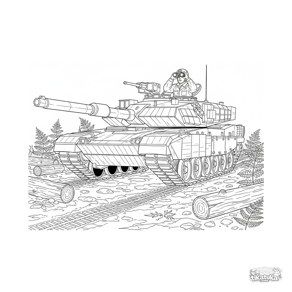 Uma página para colorir de Veículos militares com nível Difícil. Ela combina com a idade 7+ anos, imprime bem em casa e abre imediatamente no modo online.