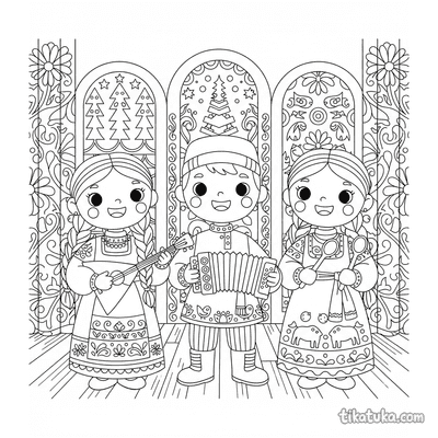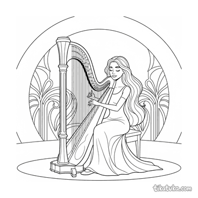 Uma página para colorir de Musica com nível Difícil. Ela combina com a idade 10+ anos, imprime bem em casa e abre imediatamente no modo online.