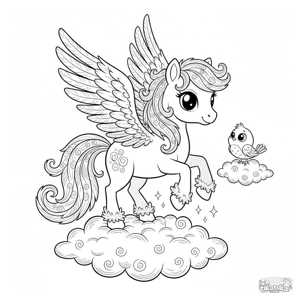 Uma página para colorir de Pôneis com nível Difícil. Ela combina com a idade 6-9 anos, imprime bem em casa e abre imediatamente no modo online.