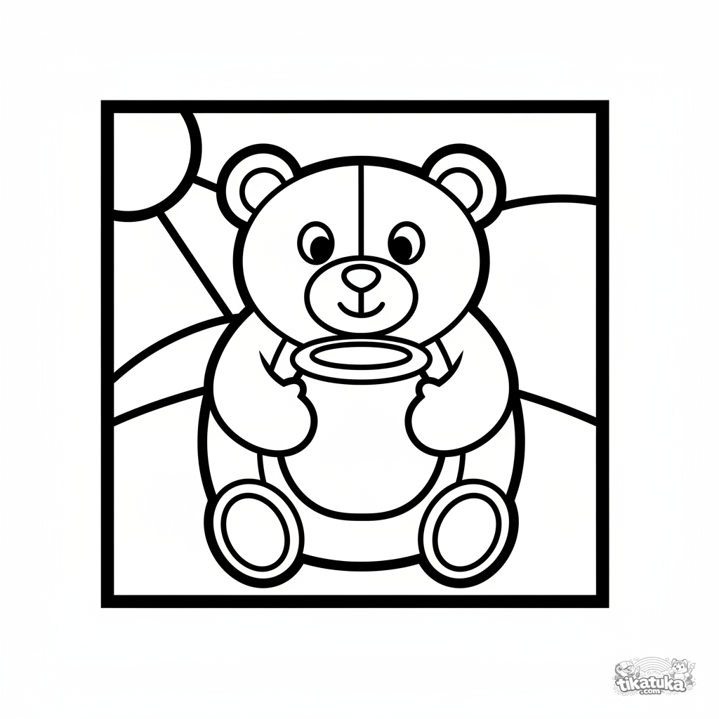 Página para colorir para crianças de 2-3 anos: um grande urso de pelúcia com um pote de mel. Formas grandes e simples, contornos grossos. Página para pintar por números para crianças.