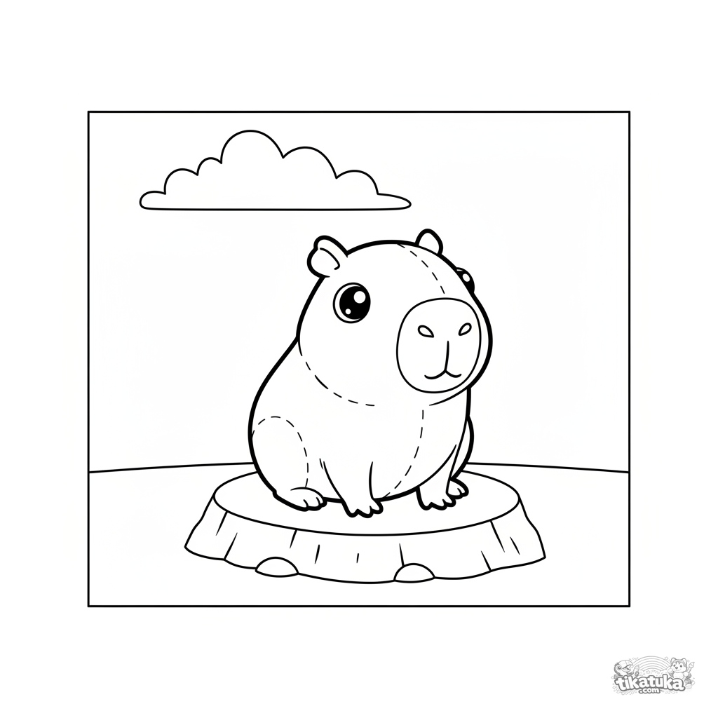 Uma página para colorir de Capivaras e relax com nível Fácil. Ela combina com a idade 2-3 anos, imprime bem em casa e abre imediatamente no modo online.