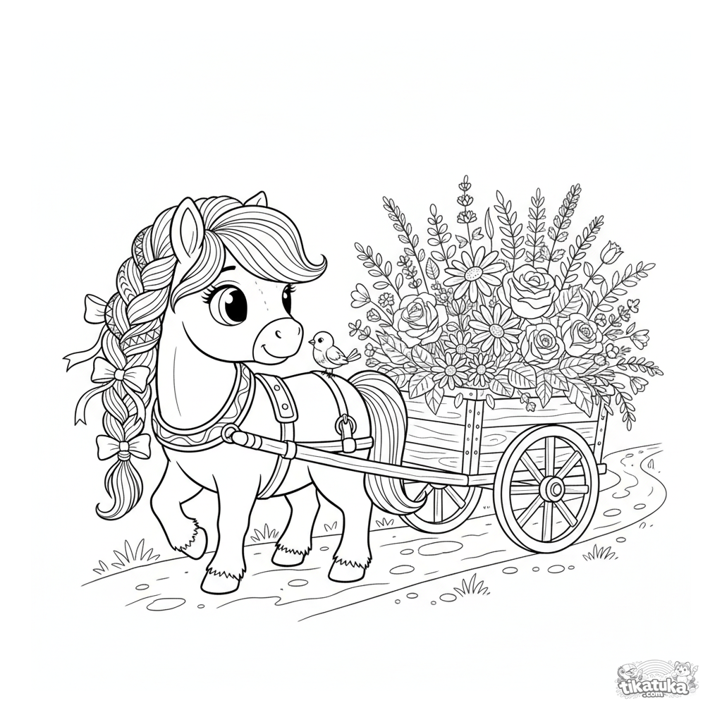 Uma página para colorir de Pôneis com nível Difícil. Ela combina com a idade 5-8 anos, imprime bem em casa e abre imediatamente no modo online.