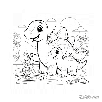 Uma página para colorir de Dinossauros com nível Difícil. Ela combina com a idade 10+ anos, imprime bem em casa e abre imediatamente no modo online.