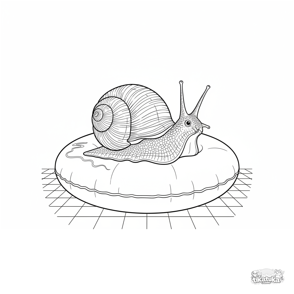 Página complexa para colorir para crianças de 10-12 anos: um caracol do mar rasteja sobre uma boia. Texturas da concha, precisão anatômica.