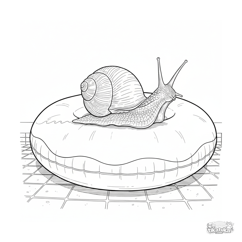 Página complexa para colorir para crianças de 10-12 anos: um caracol realista explora a borda de um anel inflável na piscina.