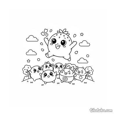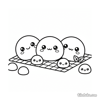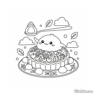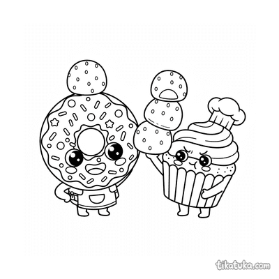 Uma página para colorir de Comida kawaii e boba com nível Difícil. Ela combina com a idade 10+ anos, imprime bem em casa e abre imediatamente no modo online.