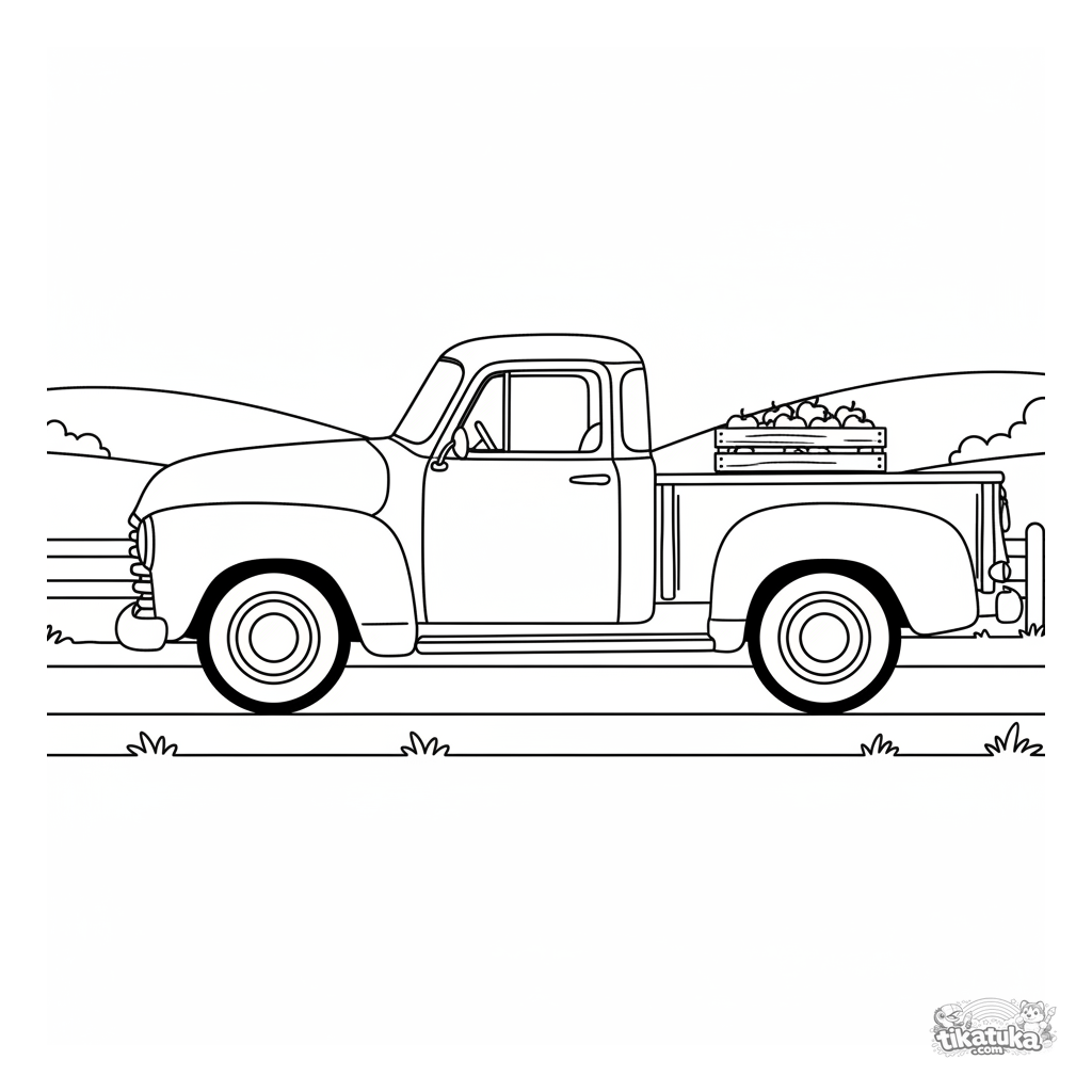 Uma página detalhada para colorir de uma caminhonete vintage. Para meninos de 4-6 anos que amam veículos.