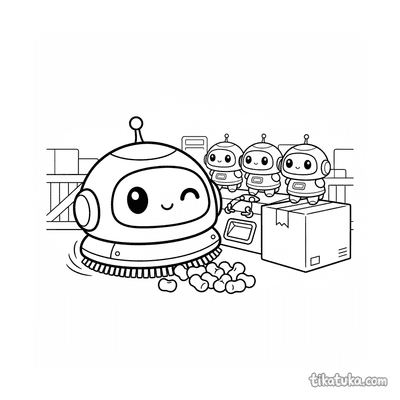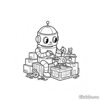Uma página para colorir de Robôs com nível Médio. Ela combina com a idade 7-9 anos, imprime bem em casa e abre imediatamente no modo online.