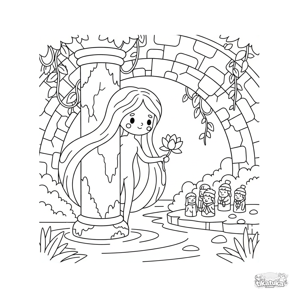 Uma página para colorir de Mitos com nível Médio. Ela combina com a idade 5-10 anos, imprime bem em casa e abre imediatamente no modo online.