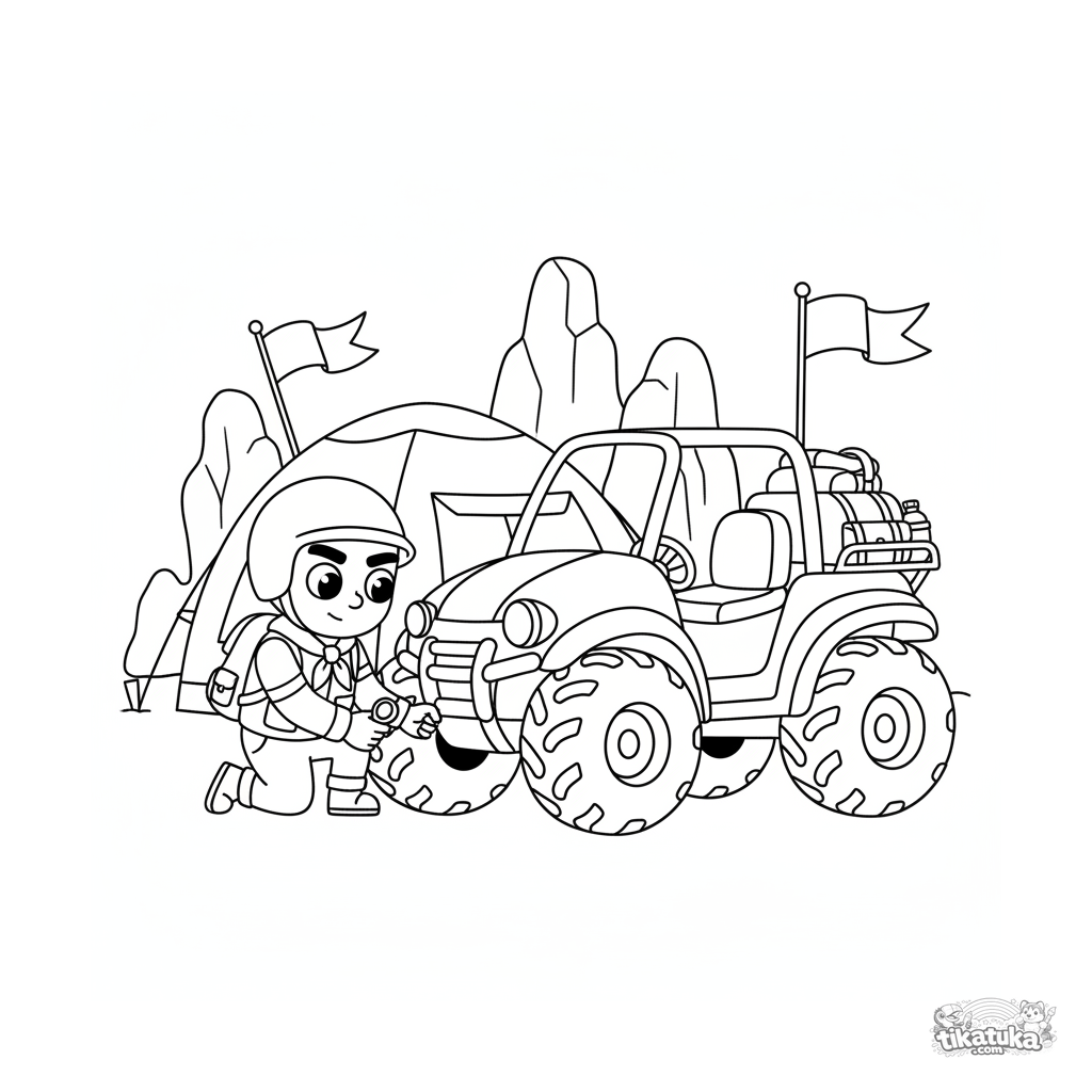 Uma página para colorir de Veículos militares com nível Médio. Ela combina com a idade 7-9 anos, imprime bem em casa e abre imediatamente no modo online.