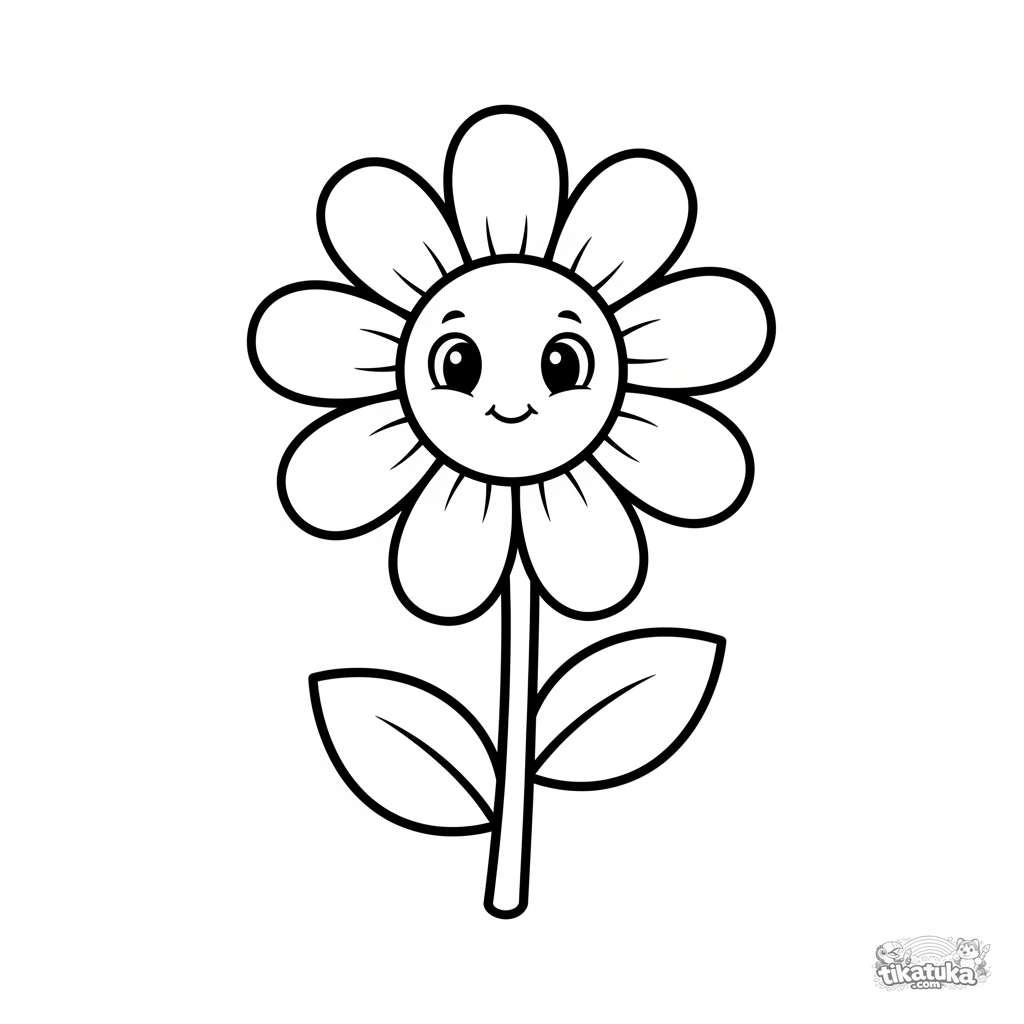 Uma página para colorir de Flores com nível Fácil. Ela combina com a idade 2-3 anos, imprime bem em casa e abre imediatamente no modo online.