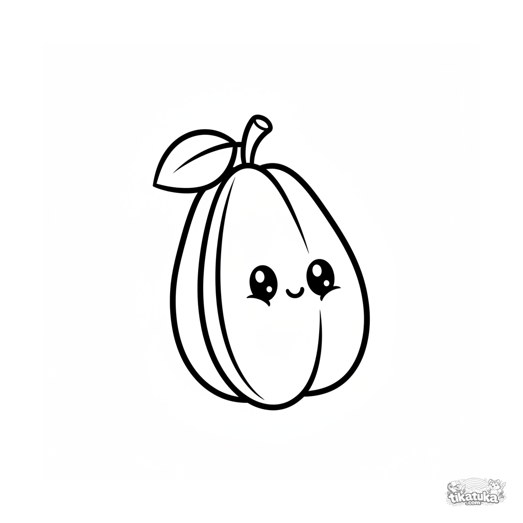 Página muito simples para colorir para crianças pequenas 2-3: uma única carambola sobre fundo branco. Contornos grossos, áreas grandes.