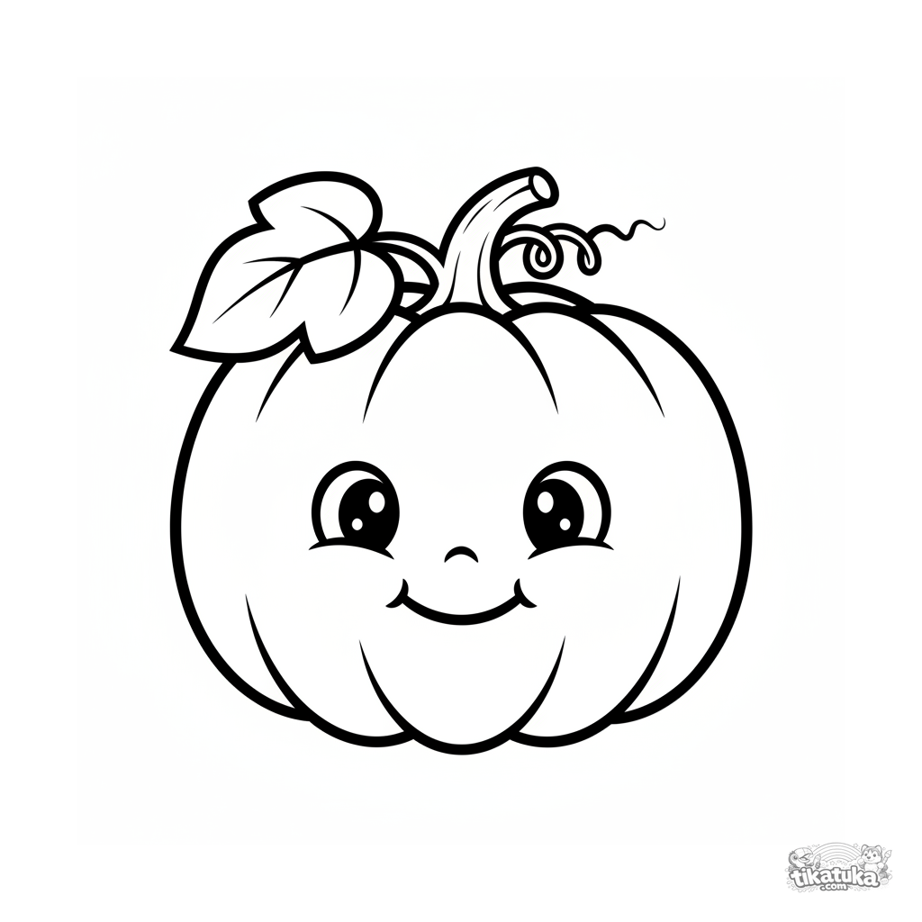 Página para colorir muito simples para bebês 2-3: uma abóbora grande e amigável com rosto. Formas grandes, muito espaço aberto.
