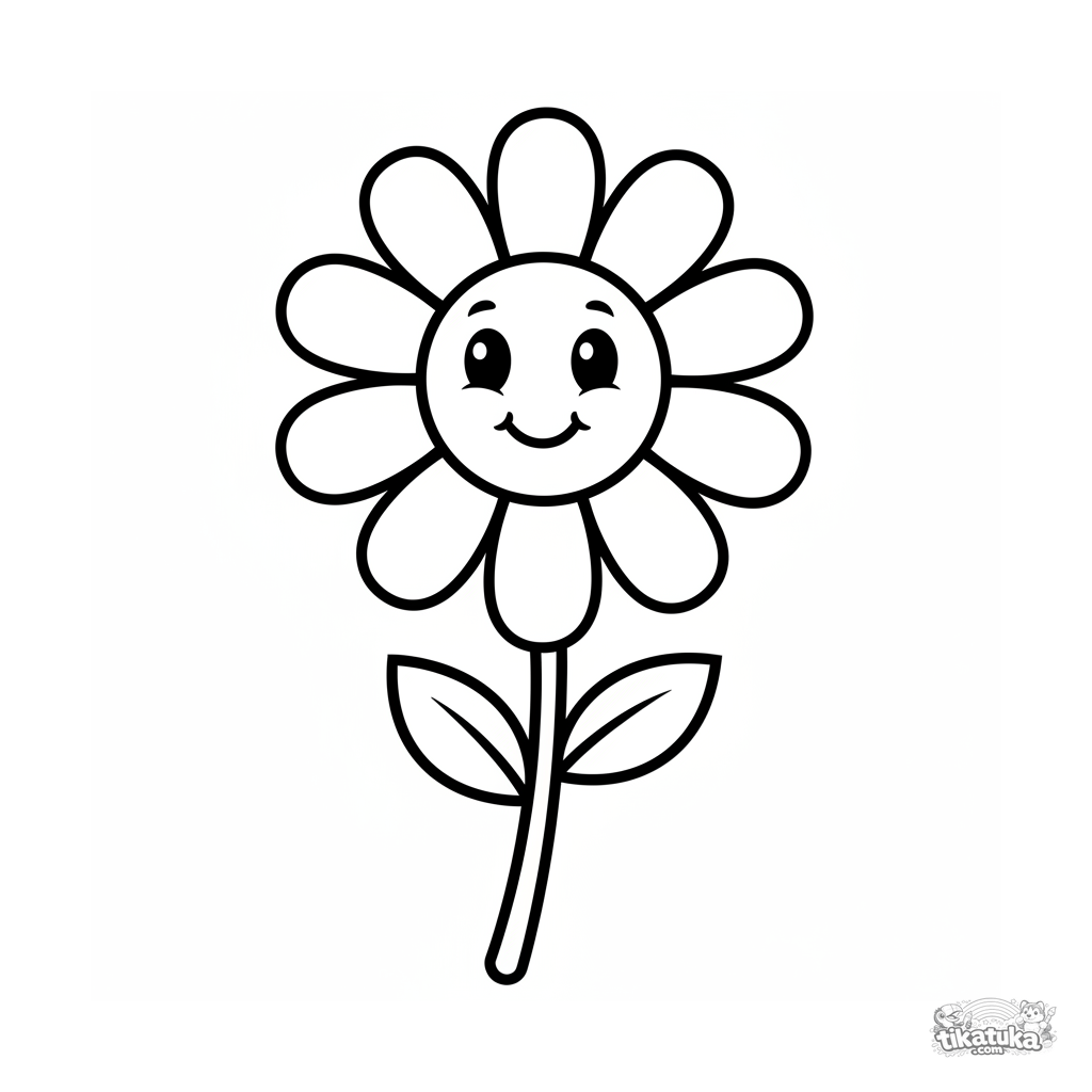 Uma página para colorir de Flores com nível Fácil. Ela combina com a idade 2-3 anos, imprime bem em casa e abre imediatamente no modo online.