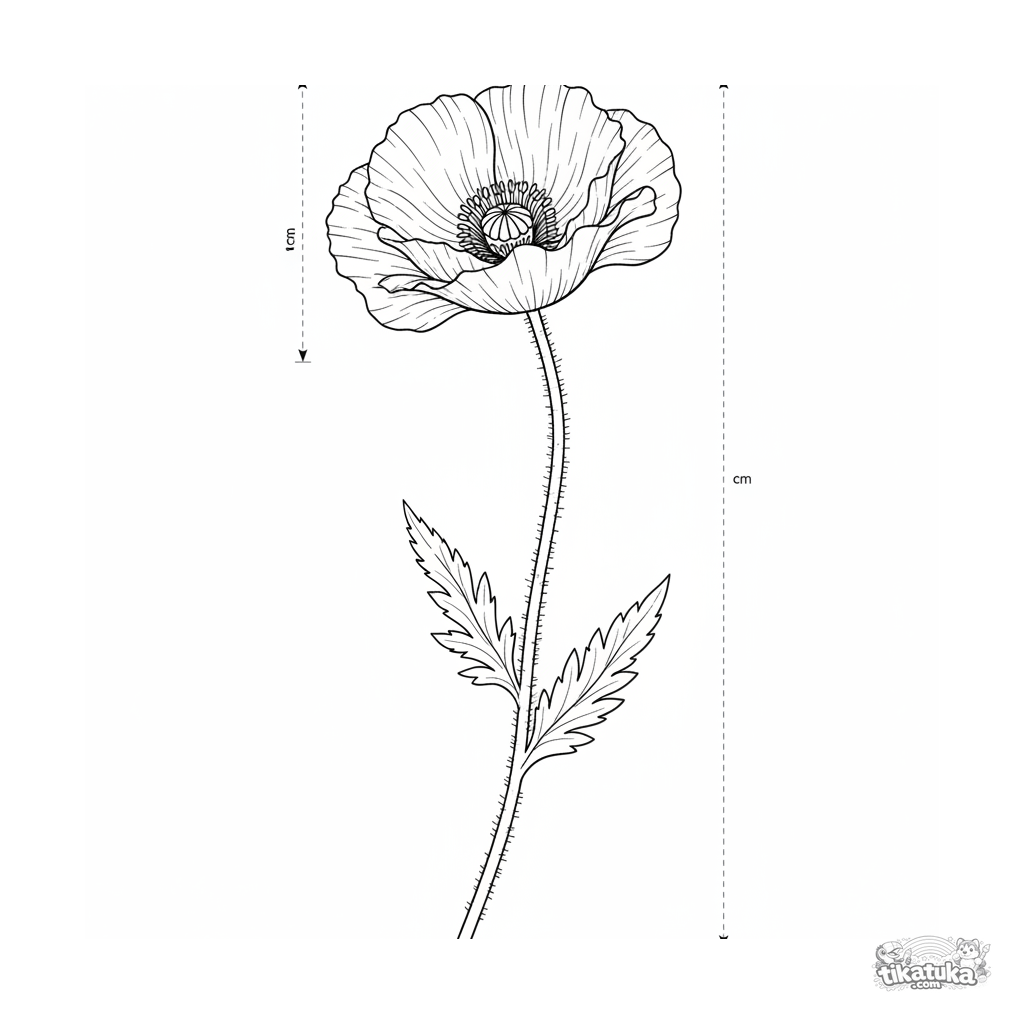Página para colorir detalhada para crianças de 10-12 anos: um esboço botânico de uma papoula silvestre. Perfeita para amantes da natureza.