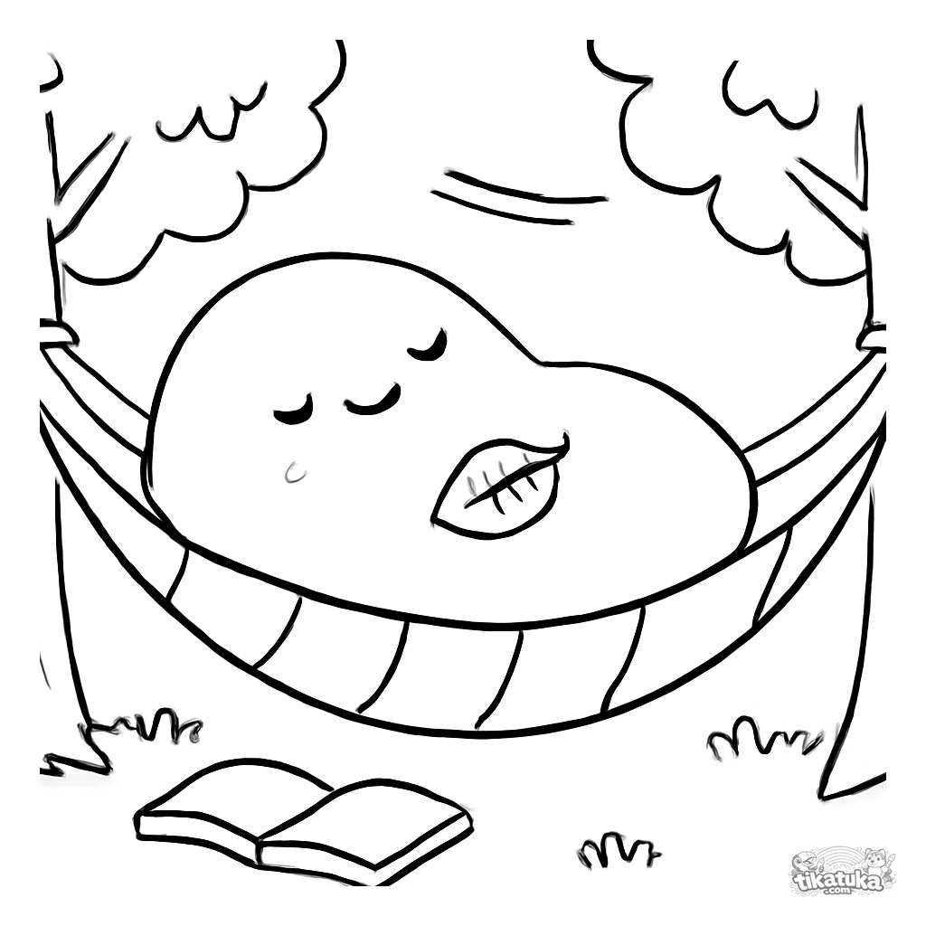 Página para colorir fácil de um monstro bolha sonolento numa rede. Para crianças pequenas de 2 a 5 anos.