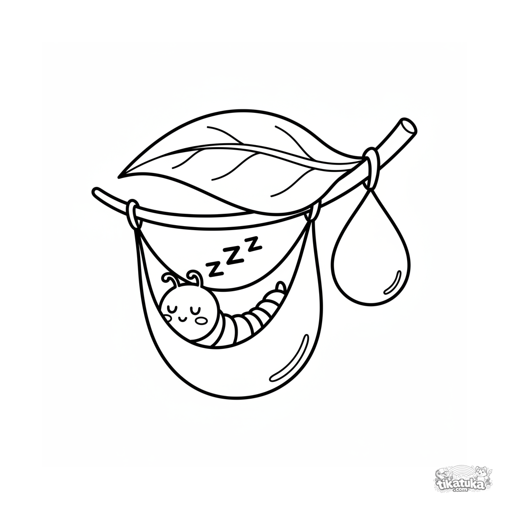 Página para colorir simples para crianças pequenas 2-3: uma lagarta sonolenta dorme em uma rede de orvalho. Formas grandes.