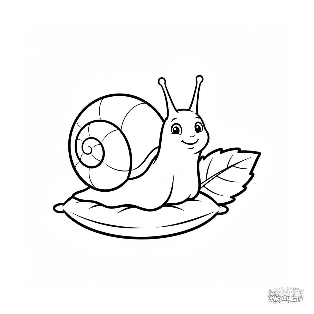 Página para colorir para 2-3 anos: um caracol com casa-concha descansa em uma almofada macia. Contornos claros, formas grandes.