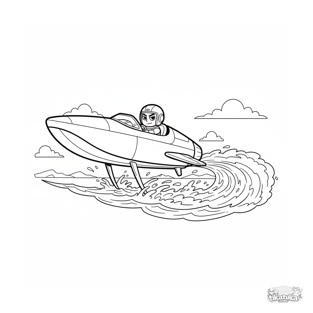 Página para colorir para pré-adolescentes 7-9: um hidrofólio veloz corre pelo mar com seu casco elevado acima da água.