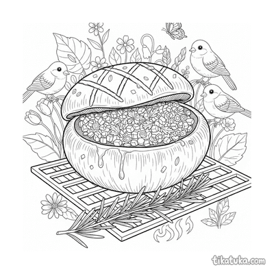 Uma página para colorir de Comida com nível Médio. Ela combina com a idade 4-6 anos, imprime bem em casa e abre imediatamente no modo online.