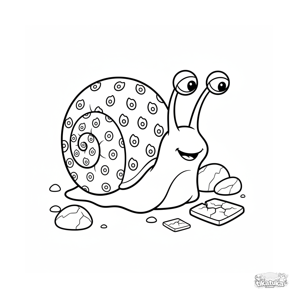 Página simples para colorir para crianças pequenas 2-3: um caracol grande e amigável no covil da Górgona. Formas grandes e claras.