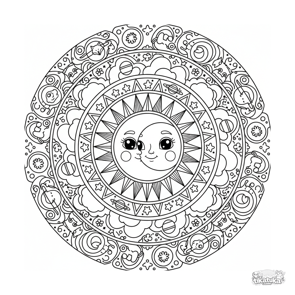 Uma página para colorir de Mandalas com nível Difícil. Ela combina com a idade 10+ anos, imprime bem em casa e abre imediatamente no modo online.