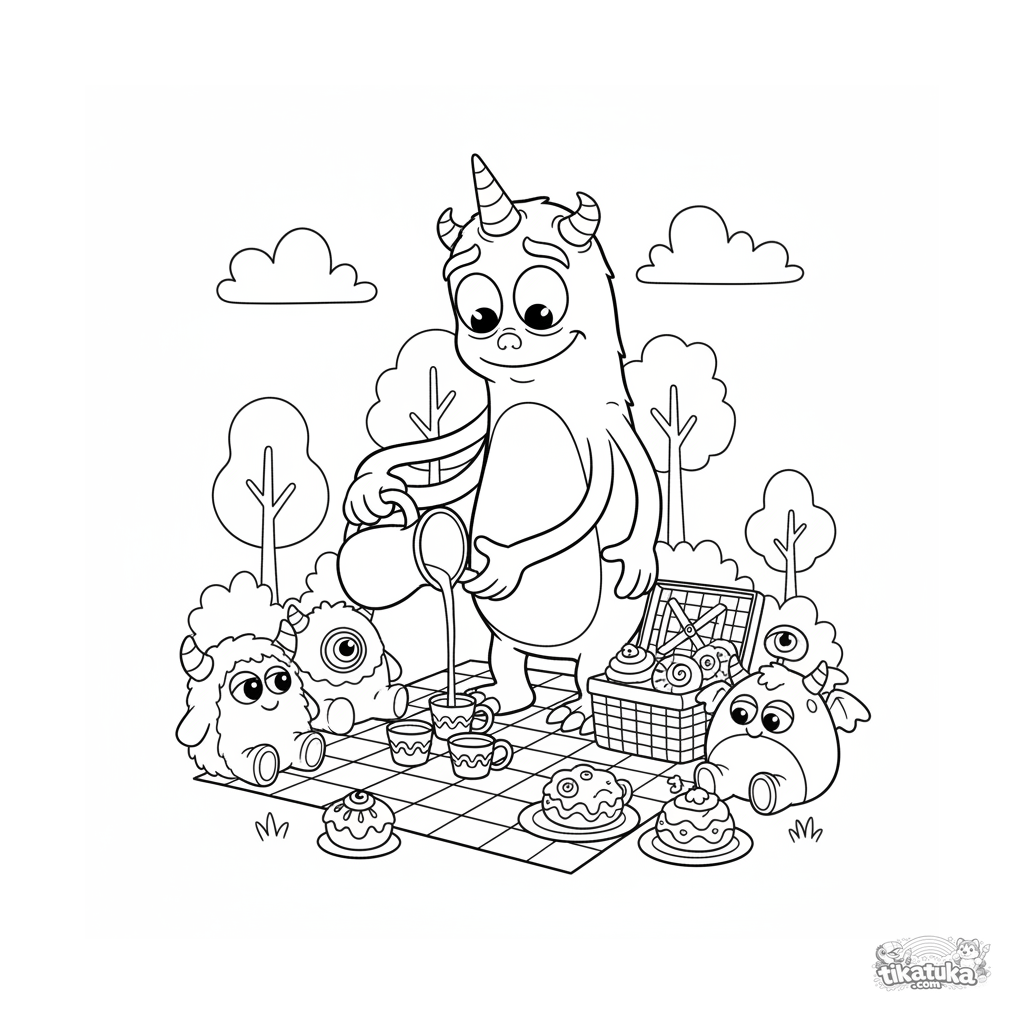 Uma página para colorir de Monstros com nível Médio. Ela combina com a idade 7-9 anos, imprime bem em casa e abre imediatamente no modo online.