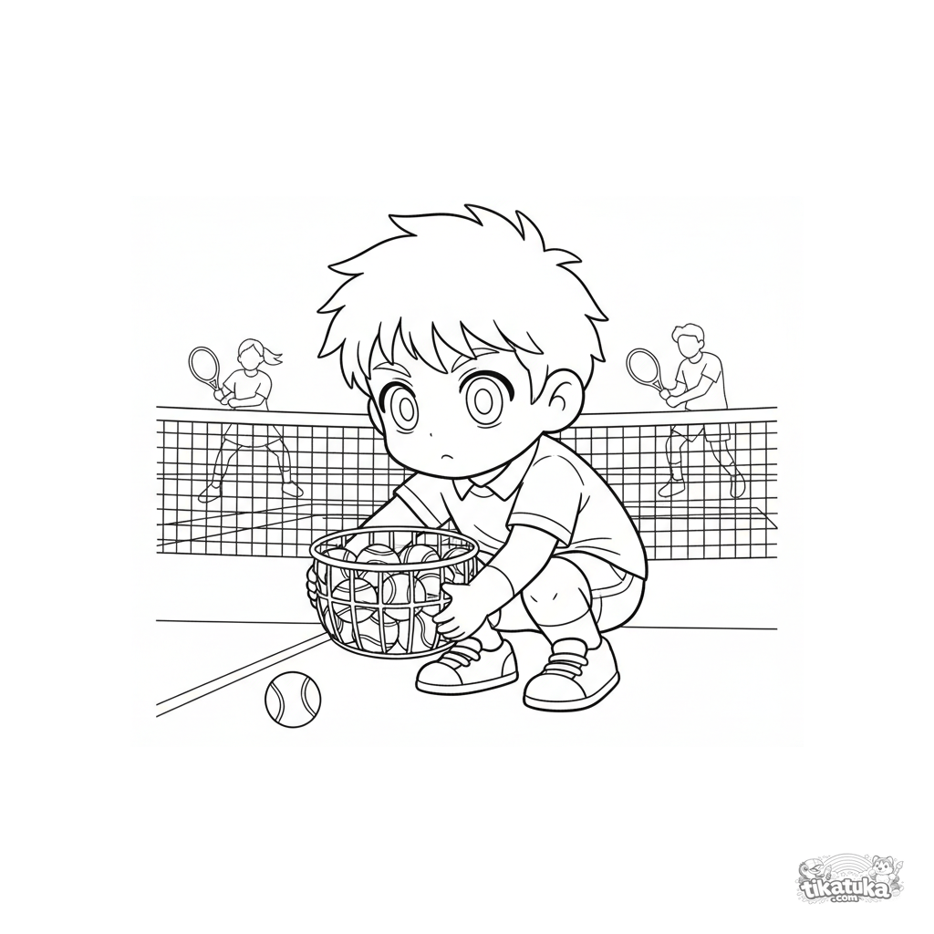 Página para colorir para crianças de 7-9 anos: um boleiro atento na borda da quadra se prepara. Pose dinâmica de espera.