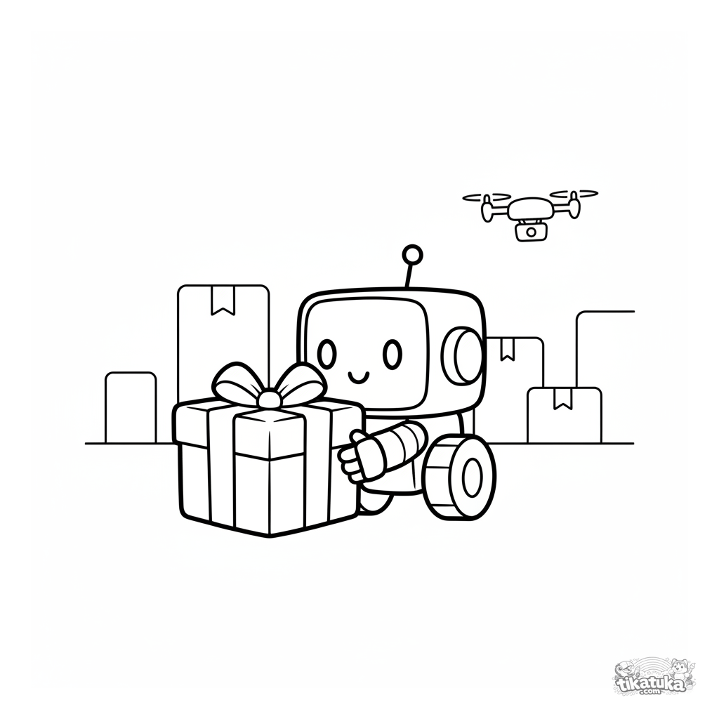 Uma página para colorir de Robôs com nível Fácil. Ela combina com a idade 2-3 anos, imprime bem em casa e abre imediatamente no modo online.