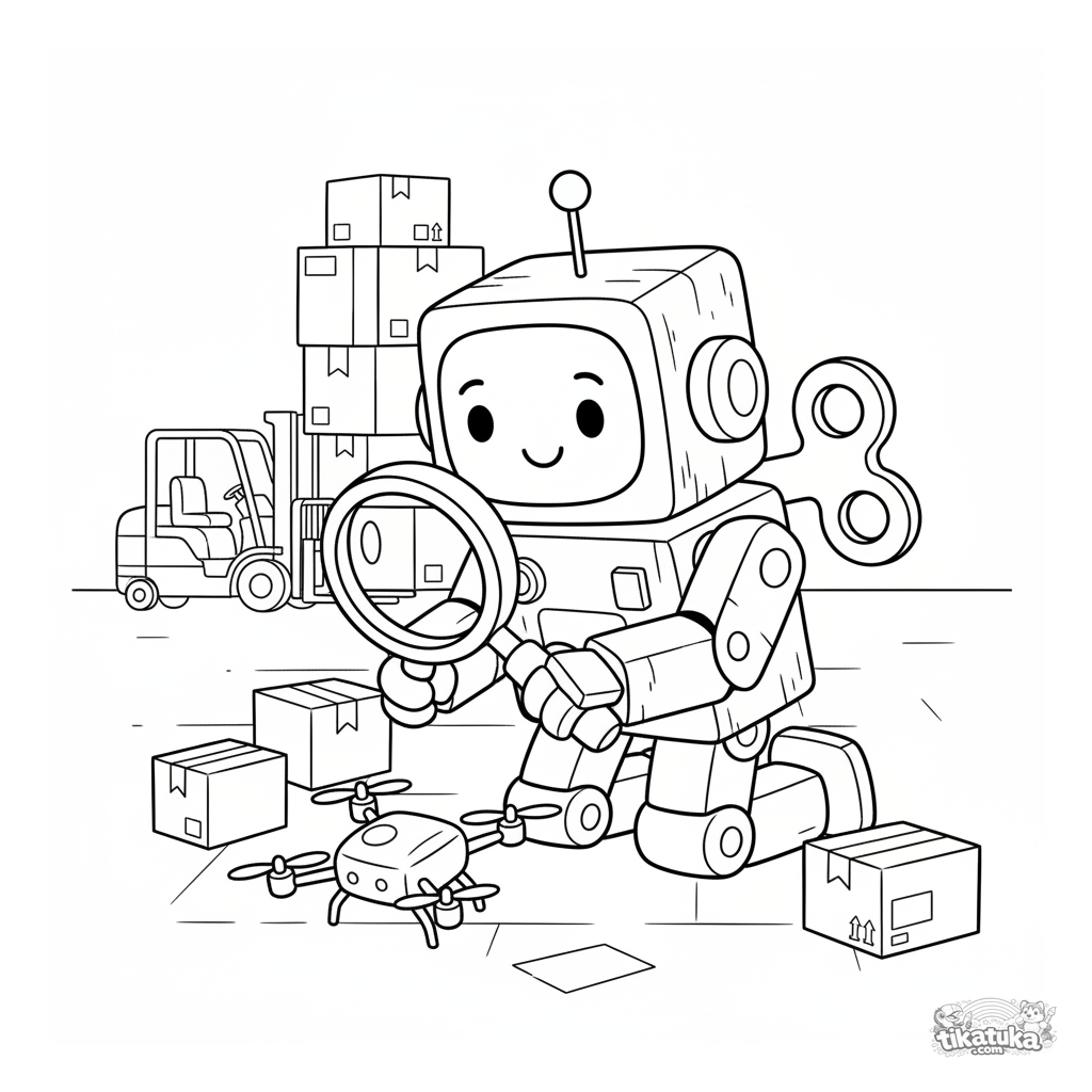 Uma página para colorir de Robôs com nível Médio. Ela combina com a idade 4-6 anos, imprime bem em casa e abre imediatamente no modo online.