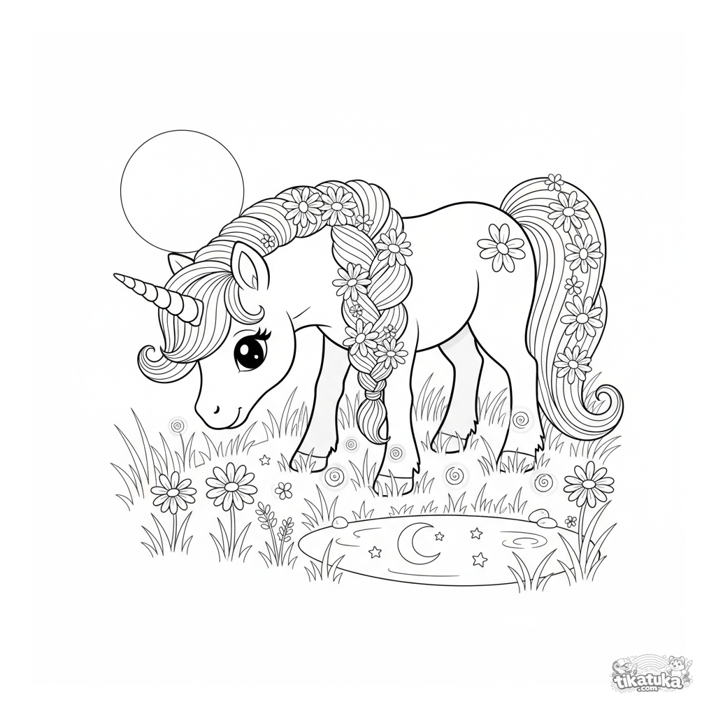 Uma página para colorir de Pôneis com nível Difícil. Ela combina com a idade 8+ anos, imprime bem em casa e abre imediatamente no modo online.