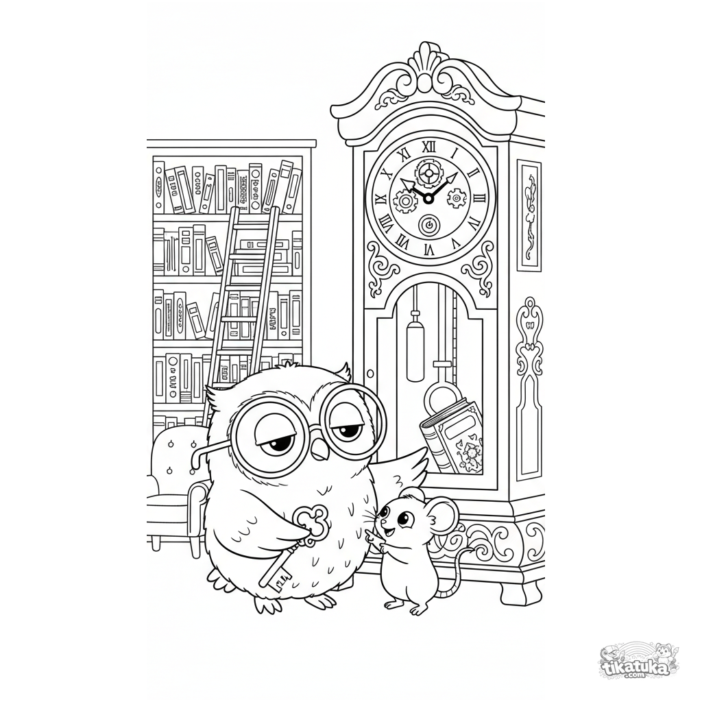 Descubra Oof e o Rato numa biblioteca, com uma chave e um livro secreto. Baixe, imprima ou pinte online esta cena de descoberta emocionante!