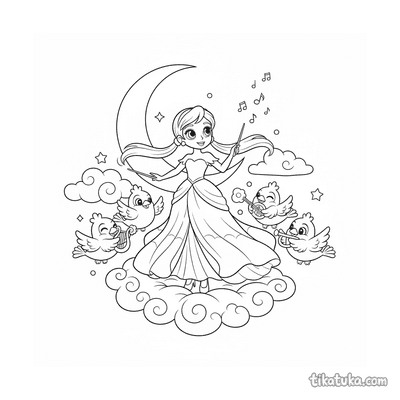 Uma página para colorir de Princesas com nível Difícil. Ela combina com a idade 10+ anos, imprime bem em casa e abre imediatamente no modo online.