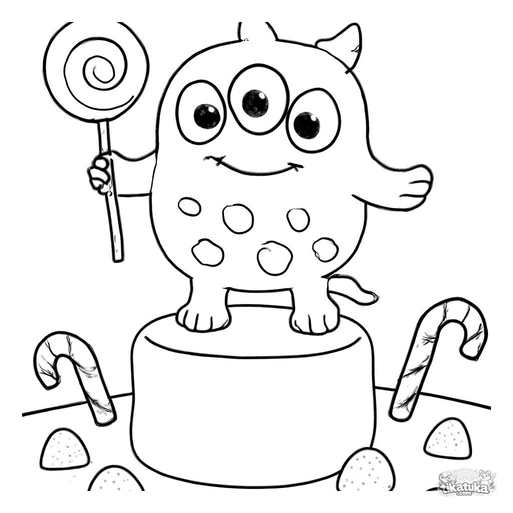 Uma página para colorir de Monstros com nível Fácil. Ela combina com a idade 2-5 anos, imprime bem em casa e abre imediatamente no modo online.