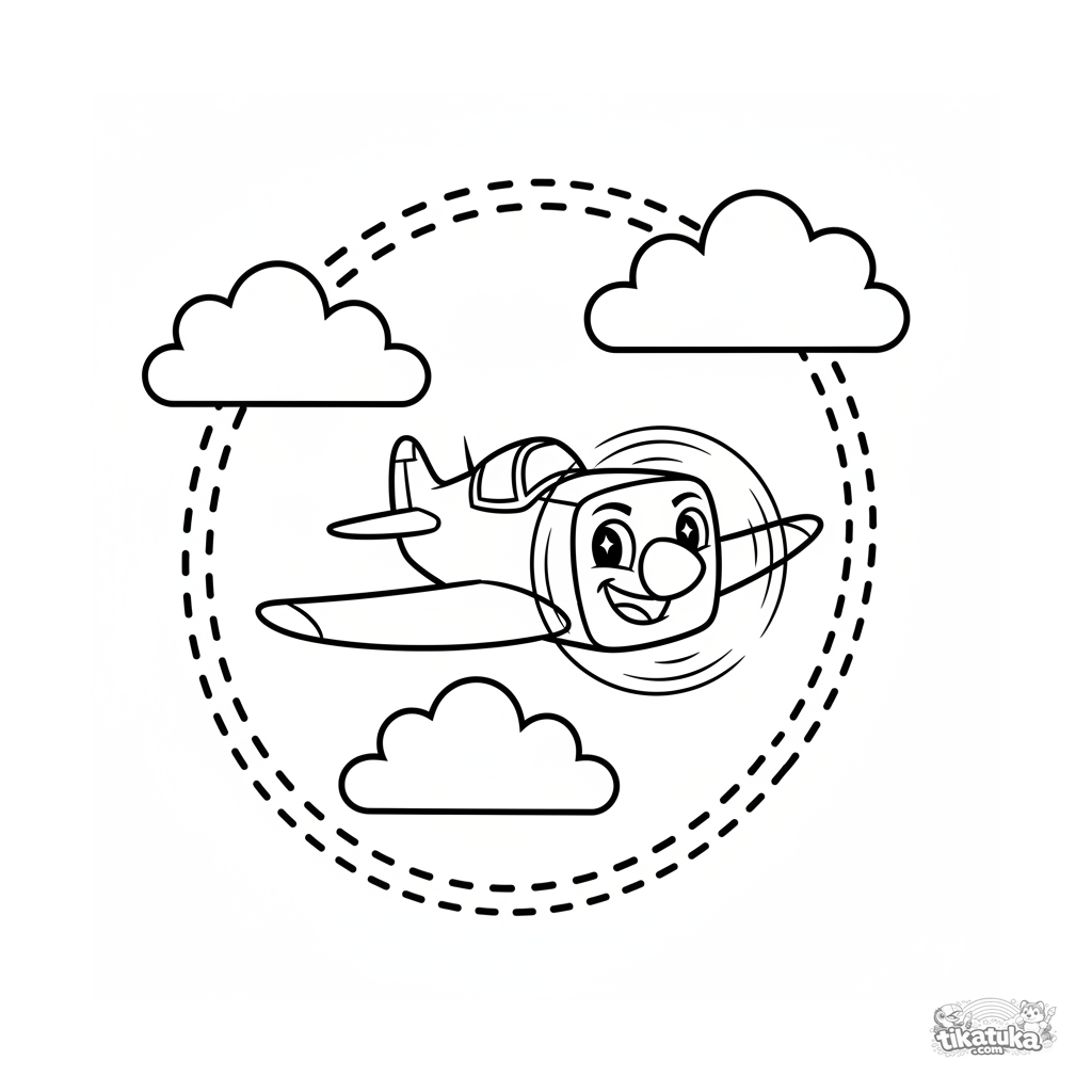 Uma página para colorir de Aeronaves com nível Fácil. Ela combina com a idade 2-3 anos, imprime bem em casa e abre imediatamente no modo online.