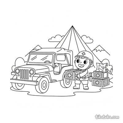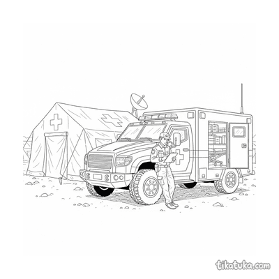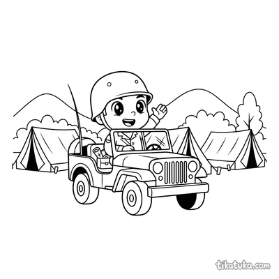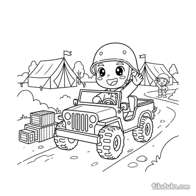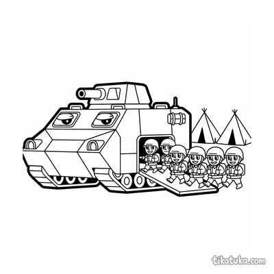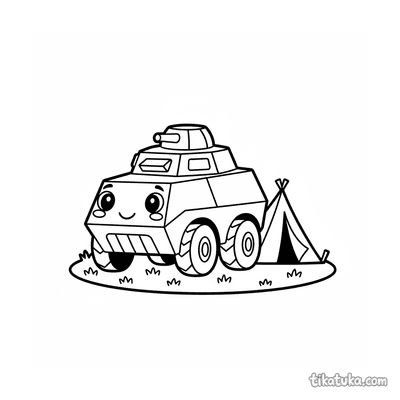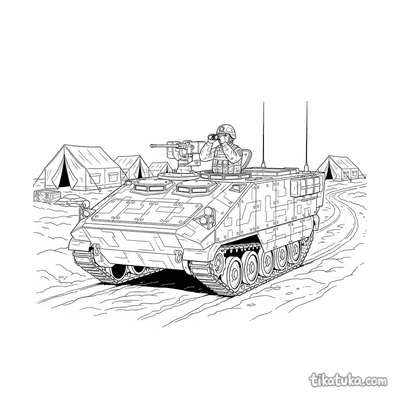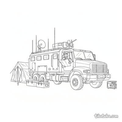 Uma página para colorir de Veículos militares com nível Difícil. Ela combina com a idade 7+ anos, imprime bem em casa e abre imediatamente no modo online.