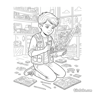 Uma página para colorir de Para Meninos com nível Médio. Ela combina com a idade 5-7 anos, imprime bem em casa e abre imediatamente no modo online.