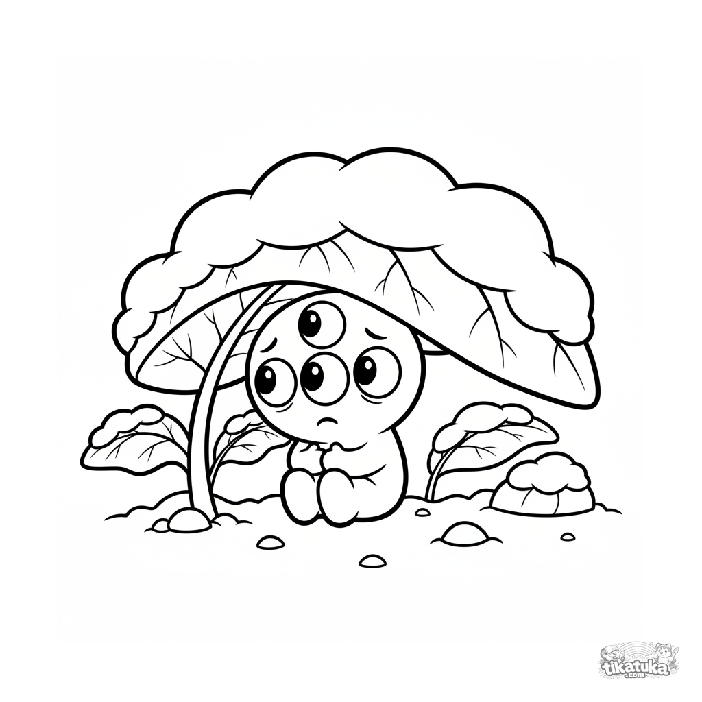 Zip, um alienígena, busca abrigo sob uma folha na primeira neve, sentindo-se pequeno e solitário. Baixe, imprima ou pinte online esta tocante imagem.