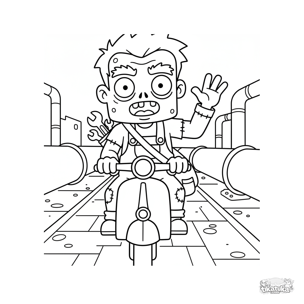 Uma página para colorir de Zumbis com nível Médio. Ela combina com a idade 7-9 anos, imprime bem em casa e abre imediatamente no modo online.