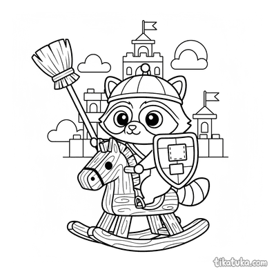 As aventuras do Guaxinim Shmyak ganham vida em cada ilustração. Ele aparece como um Cavaleiro com Dragão de Treinamento, um Astronauta no espaço, ou um Maestro regendo uma orquestra. Há também a Princesa Shmyak em um Chá da Tarde e Shmyak voando em um Avião de Papel. Estes **desenhos de guaxinim para colorir** abordam temas como fantasia florestal e estações espaciais, ideais para crianças de 2 a 12 anos.