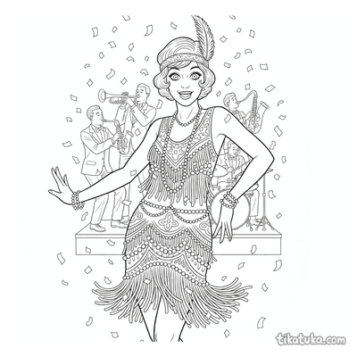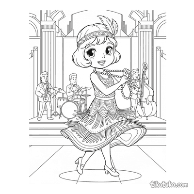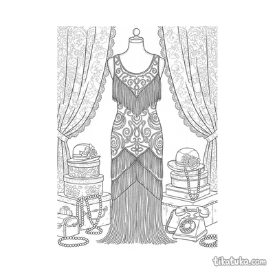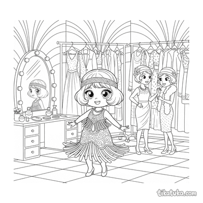 Aqui encontrará ilustrações que retratam vestidos flapper em movimento, desde modelos girando em festas speakeasy até peças exibidas em manequins de boutiques vintage. As cenas incluem vitrines, quartos decorados e bastidores de passarela, transportando para a atmosfera única dos loucos anos vinte. Estes desenhos estão prontos para serem baixados e impressos em casa, permitindo criar uma atividade educativa sobre história da moda. Os contornos limpos e definidos facilitam a pintura, seja com lápis de cor ou diretamente no ecrã, oferecendo uma forma criativa de aprender sobre este período icónico.