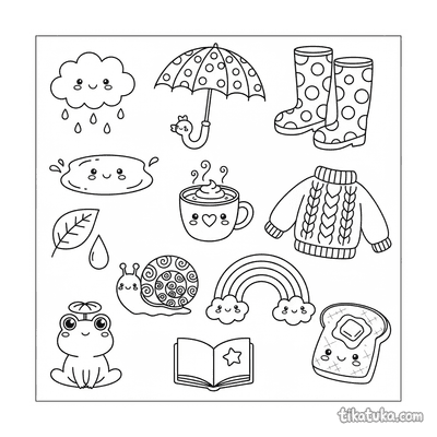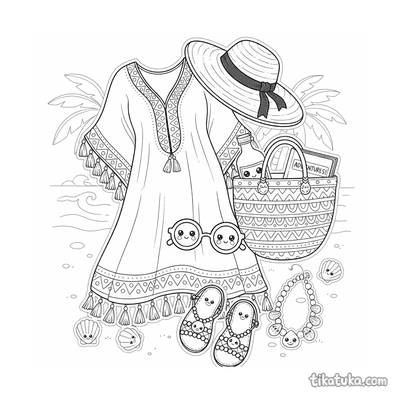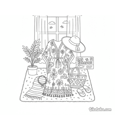 Nesta seção, você encontra cenas com acessórios dispostos de forma criativa, como um conjunto de praia sobre a areia, um tutu de ballet no estúdio ou adesivos kawaii para dias chuvosos. Também há vestidos flapper, blusas tradicionais bordadas e conjuntos de camadas para chuva, todos com seus acessórios característicos. As ilustrações em traços limpos são ideais para imprimir em lote, permitindo horas de diversão. As crianças podem baixar e colorir online ou imprimir as páginas para praticar com lápis e canetinhas.