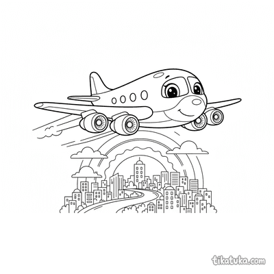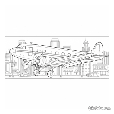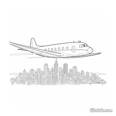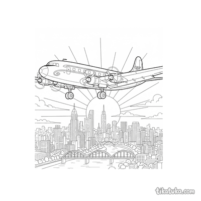 Os desenhos incluem cenas como um avião de linha pousando em uma ilha tropical, aeronaves dos anos 50 aproximando-se da cidade ao pôr do sol e aviões comerciais estacionados em hangares. Também há imagens de aviões de passageiros de meados do século no terminal e em manobras de aterrissagem sobre a cidade. Todas as páginas estão prontas para imprimir em preto e branco, com traços limpos ideais para colorir. Você pode baixar a coleção completa de uma vez ou escolher suas cenas favoritas de aviação para imprimir em casa.