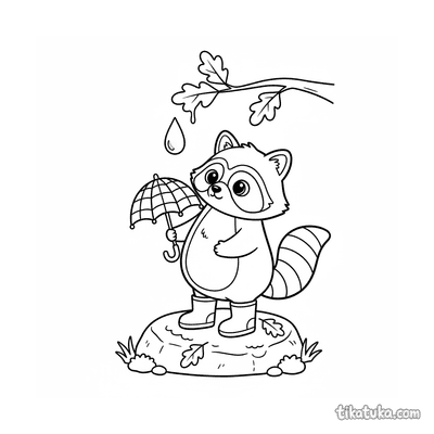 Guaxinim com guarda-chuva sob galho