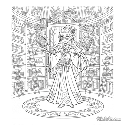 Arquivista Élfico Organizando Livros Flutuantes