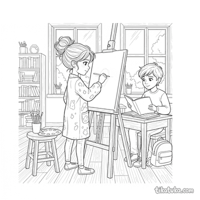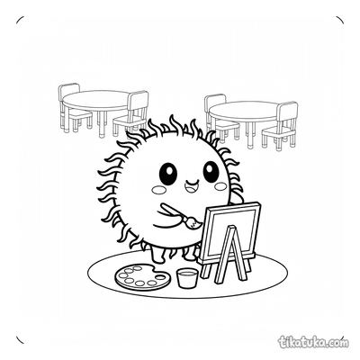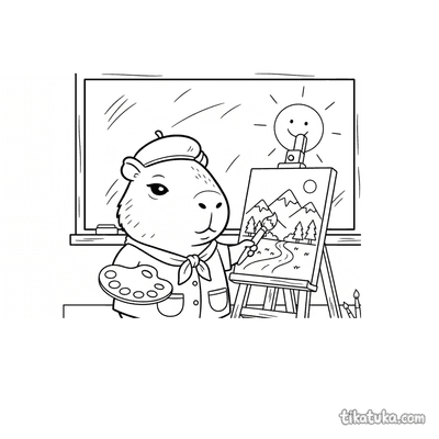 As crianças podem colorir cenas como um artista husky diante da tela, uma menina pintando um mural gigante na cidade ou uma capivara artista capturando o pôr do sol. Há também situações divertidas, como uma ameba pintora, um minotauro desenhando no labirinto e a coruja Oof pintando um girassol. Todos os desenhos estão disponíveis para baixar e imprimir em preto e branco, com traços limpos ideais para lápis de cor e canetinhas. É possível imprimir várias páginas de uma vez para criar um caderno de atividades artísticas ou colorir diretamente no site.