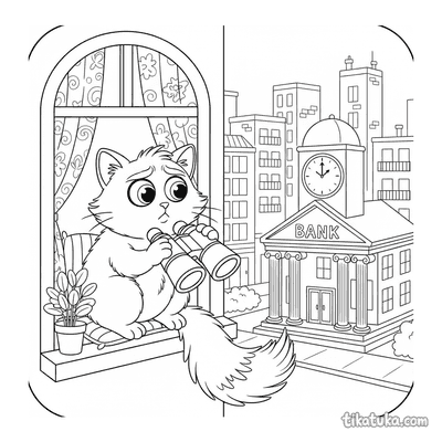 Gato dramático com binóculos no parapeito