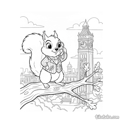 Esquilo Confiante na Árvore com Monóculo